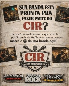 O canal do youtube O Papo é Rock acaba de se unir aos canais Resistência Underground, Rock Freeday e a Lamore Rock Show Webtv, para uma iniciativa que irá impactar de forma relevante o rock independente brasileiro. Trata-se do CIR: Circuito Independente Rock. Funcionando como uma espécie de rádio que toca vídeo clipes, O Papo é Rock passou por um período de reestruturação e está retornando nesse ano de 2026, agora em formato de vídeo, acompanhando as mudanças no consumo de conteúdo sem abrir mão de sua essência. Agora o programa passa a ser exibido quinzenalmente, aos sábados, com transmissão simultânea em três canais de YouTube, O Papo é Rock (SP), Rock Free Day (BA) e Resistência Underground (SP), além da Lamore Rock Show WebTV (RJ).